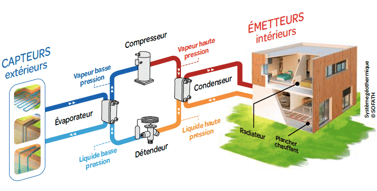 Lors du rafraichissement (PAC réversible) le circuit de fonctionnement sera alors inversé.