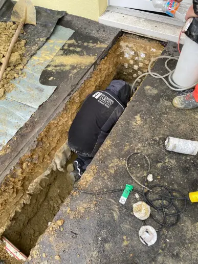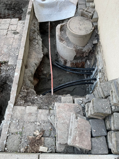 L’intégralité des postes de travail nécessaire à l’aboutissement du projet ont été planifiés, dirigés, réalisés et contrôlés par Leaderfroid Arc Lémanique, comme : les demandes d’autorisations de construire et de subventions, la dépose et l’évacuation de l’ancien système, la maçonnerie et les fouilles, le forage géothermique verticale à 220m de profondeur (2 sondes à 110m chacune, réalisé par notre partenaire foreur certifié GSP), l’installation du nouveau système, le raccordement électrique, l’isolation des conduites hydrauliques et la mise en service.